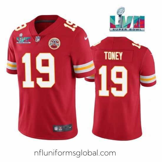 Captivating Kansas City Chiefs 19 Kadarius Toney Red Super Bowl LVII Patch Vapor Untouchable Limited Stitched Football Jersey International shipment available. Order promptly to flaunt your team pride!
