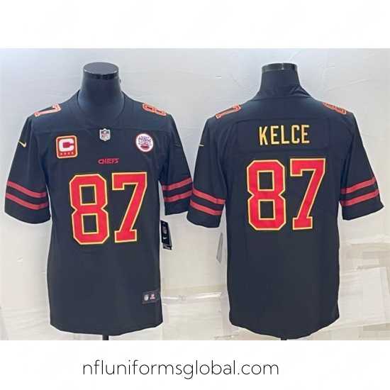 International sports retailers, check out this Gorgeous Kansas City Chiefs 87 Travis Kelce Black Red Gold 4 Star C Patch Vapor Untouchable Limited Stitched Jersey Guaranteed to impress international peers. Order now and stand out!! Featuring Export – ready NFL products, Overseas sports gear, NFL jersey export, it’s a golden opportunity for international trade. Order now!