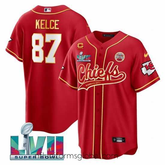 Sumptuous Kansas City Chiefs 87 Travis Kelce Red With 4 Star C Patch And Super Bowl LVII Patch Cool Bae Stitched Baseball Jersey