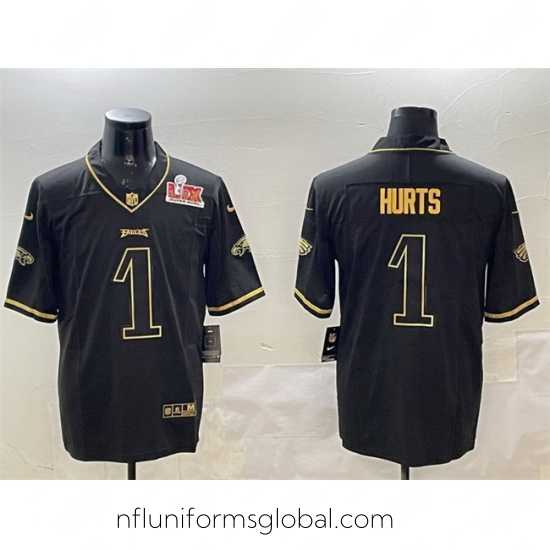 Sumptuous Philadelphia Eagles 1 Jalen Hurts Black Gold 2025 Super Bowl LIX Patch Salute To Service Vapor Untouchable Limited Stitched Football Jersey A must – have for international NFL collectors. Order immediately to add to your collection!
